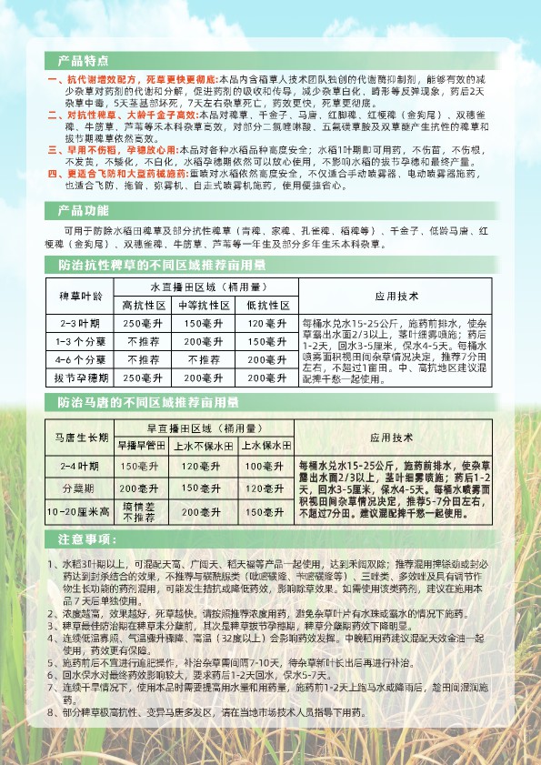 10%氰氟草酯EW ,15%氰氟草酯EC, 20%氰氟草酯OD,30%氰氟草酯OD, 40%氰氟草酯OD